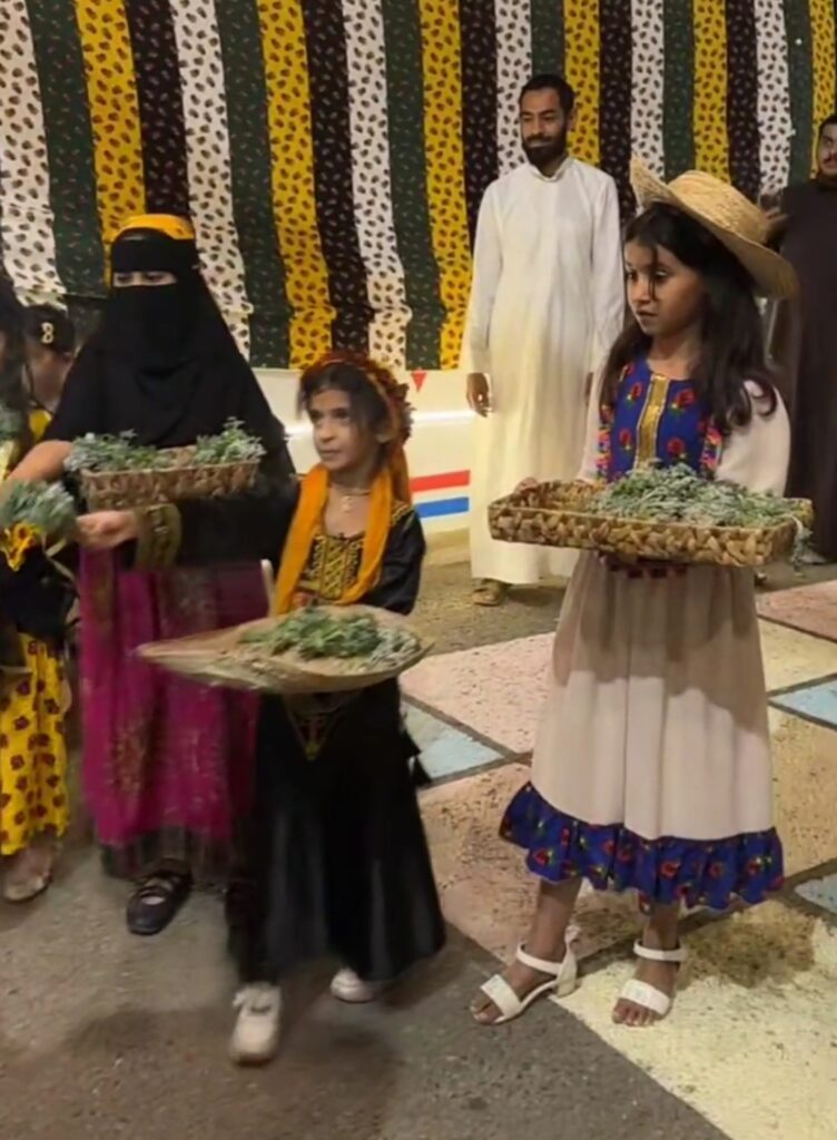 وفي أكثر من زاوية حضرت القهوة العربية والبخور، وتوزعت النباتات العطرية مثل الريحان والكادي في مشهد يعكس ثقافة الضيافة في المنطقة، ويجسد كرم أهالي الحارات واستقبالهم للزوار بروح ترحيبية معروفة.