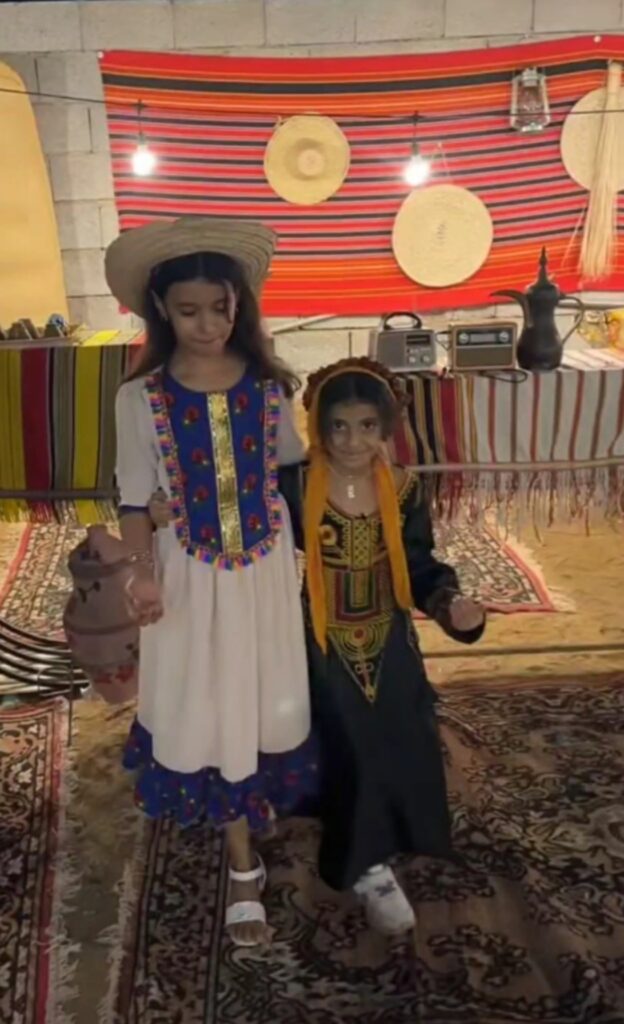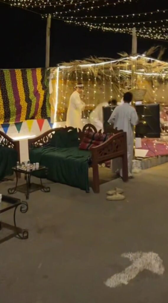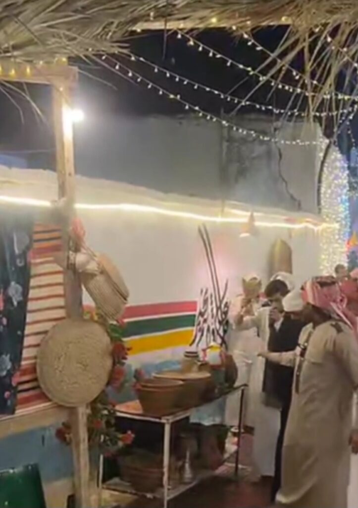 وتنقلت اللقطات بين عدد من الحارات في مركز الحقو، وظهر في المشهد — من بينها — حارة أبو ظبي وحارة الشعبة وحارة الرماح والخورمة، حيث بدت الحارات مزينة بعناية، وتجلت تفاصيل المكان في مشاهد متعددة جمعت بين الفن والتراث والفرح الشعبي.