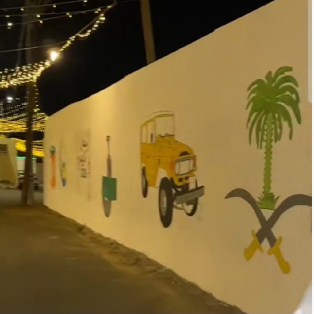 برزت الجداريات الفنية كأحد أبرز المشاهد التي لفتت الأنظار؛ رسومات تحمل ملامح من التراث الشعبي مثل الفوانيس القديمة وغيرها، إلى جانب لوحات ذات طابع وطني وأعمال فنية أضفت على الحارات روحًا بصرية مميزة، حتى بدا المكان وكأنه معرض مفتوح للفن الشعبي.