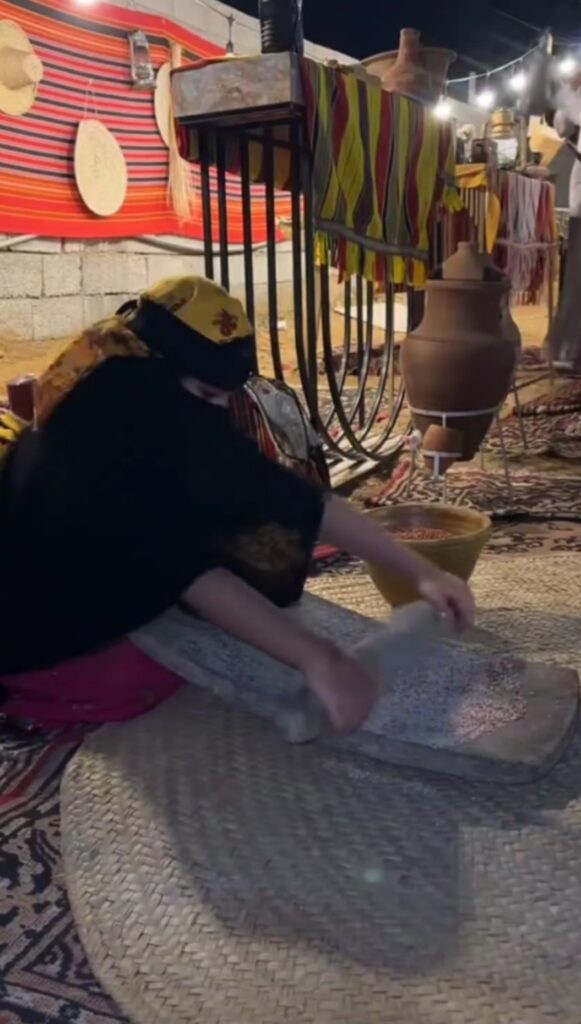 كما ظهرت زوايا تراثية تعيد الزائر إلى زمنٍ مختلف؛ مثل الرحى لطحن الحبوب وركن الحياكة اليدوية، إلى جانب مقتنيات قديمة مثل الفخاريات والراديو التقليدي، وهي تفاصيل أعادت للحارات ملامح الحياة القديمة بكل بساطتها.