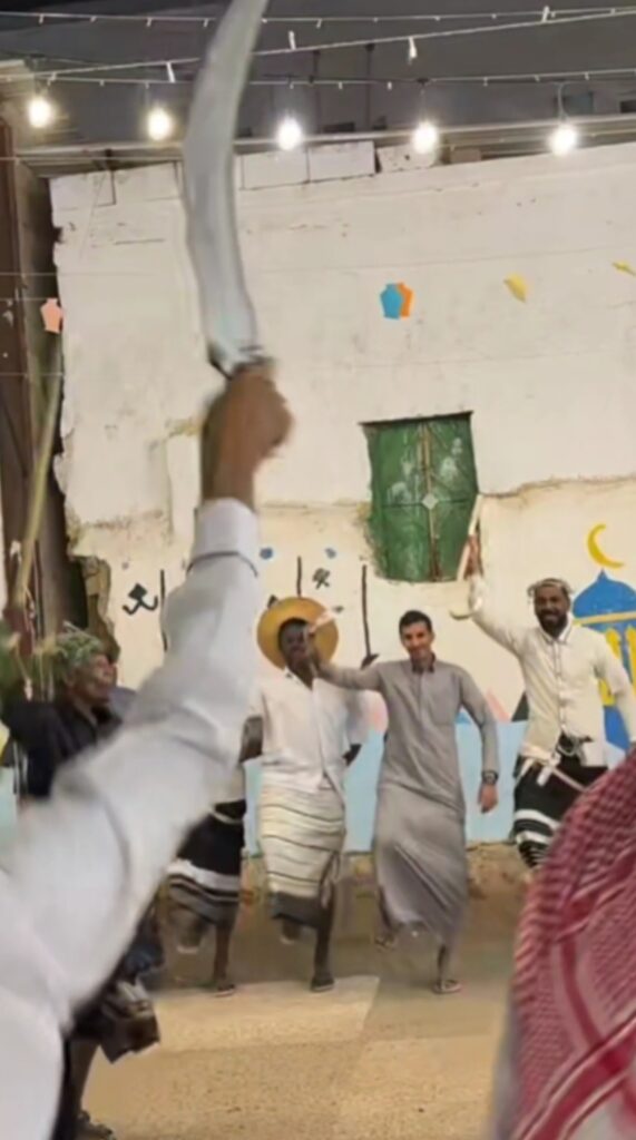 في قلب الحارات حضرت العرضة ورقصات السيوف والجنابي كعنوان للهوية الجيزانية، حيث شارك الكبار والشباب في أداء الفنون الشعبية في مشهد يجسد انتقال الموروث بين الأجيال بصورة طبيعية.