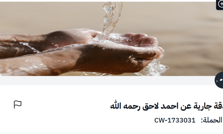 صدقة جارية عن أحمد لاحق حقوي رحمه الله عبر إحسان تفتح باب المساهمة لأعمال الخير