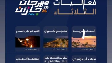 تتواصل المتعة والإثارة في “مهرجان جازان 2026″، حيث يشهد اليوم الثلاثاء حزمة مكثفة من الفعاليات الترفيهية والثقافية والرياضية، تتوزع على…