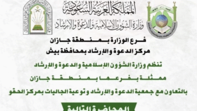 تنظّم وزارة الشؤون الإسلامية والدعوة والإرشاد ممثّلة بفرعها في منطقة جازان، وبإشراف مركز الدعوة والإرشاد بمحافظة بيش، محاضرة دعوية بعنوان…
