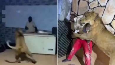 مشهد صادم .. صاحب مزرعة يُرعب عمّاله بأسد “مزاحًا”