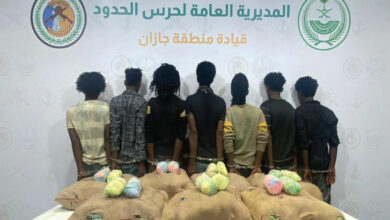 الحرب على المخدرات تتصاعد.. حرس الحدود بجازان يُسقط 7 إثيوبيين ويُحبط تهريب 140 كيلوجرامًا من نبتة القات