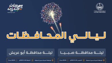 ليالي المحافظات تُشعل واجهة جازان البحرية.. جدول كامل بمواعيد مشاركات محافظات المنطقة حتى فبراير 2026