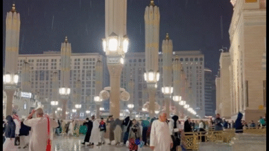 أمطار الخير تهطل على المسجد النبوي في مشهد روحاني يبهج الزوّار – فيديو