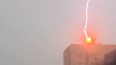 في مشهد مهيب وثّقته عدسة أحد المواطنين، ضربت صاعقة رعدية قوية أحد المباني في حي الحمدانية شمال جدة، وذلك بالتزامن…