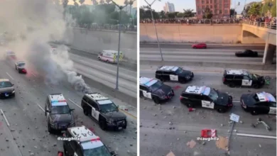 شاهد.. تدمير عشرات سيارات الشرطة الأمريكية خلال كمين للمتظاهرين في لوس أنجلوس