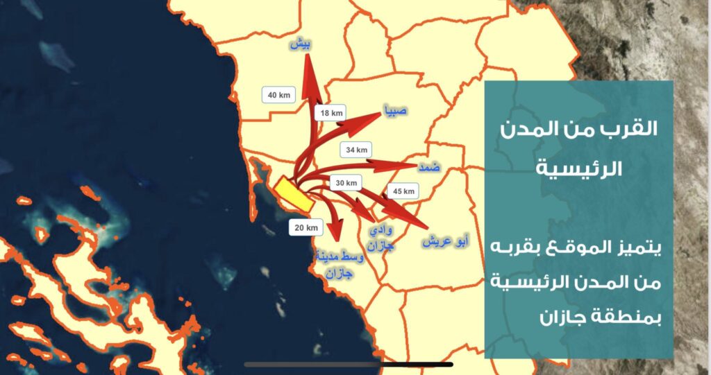 مدينة جازان قرابة 20 كيلومترًا