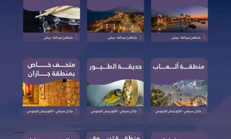 ​وفي قلب مدينة جازان، وتحديداً في منطقة “جازان سيتي” بالكورنيش الجنوبي، تتحول المنطقة إلى كرنفال مفتوح يجمع بين الثقافة والترفيه، حيث تتضمن القائمة:
