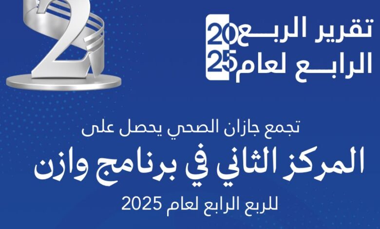 حقق تجمع جازان الصحي إنجازاً نوعياً بحصوله على المركز الثاني على مستوى التجمعات الصحية في المملكة ضمن برنامج “وازن” للربع الرابع من عام 2025م، متوجاً جهوده بسيطرة مستشفياته على مراكز متقدمة في قائمة الـ (TOP 5) وطنياً في مختلف الفئات السريرية.