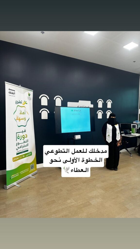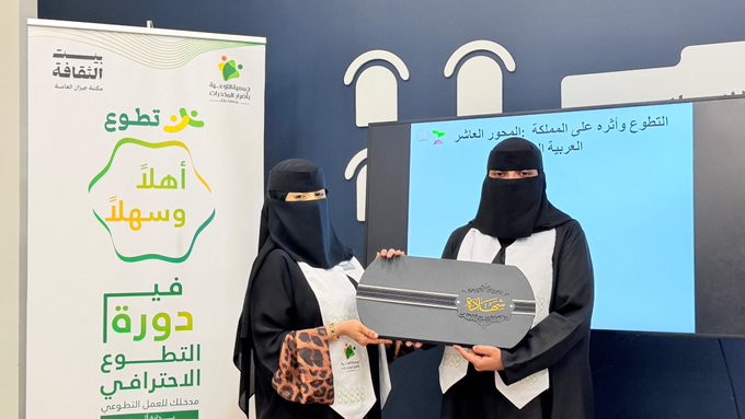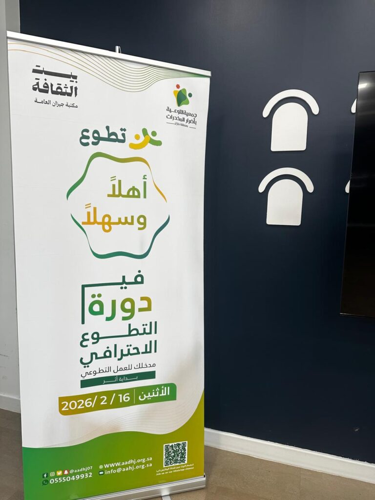 نفّذت الاستاذة إيلاف أحمد دورة تدريبية بعنوان “التطوع الاحترافي – مدخلك إلى العمل التطوعي”، بالتعاون مع جمعية التوعية بأضرار المخدرات بمنطقة جازان، وذلك بالشراكة مع بيت الثقافة، ضمن الجهود الرامية إلى تعزيز ثقافة العمل التطوعي المنظم.