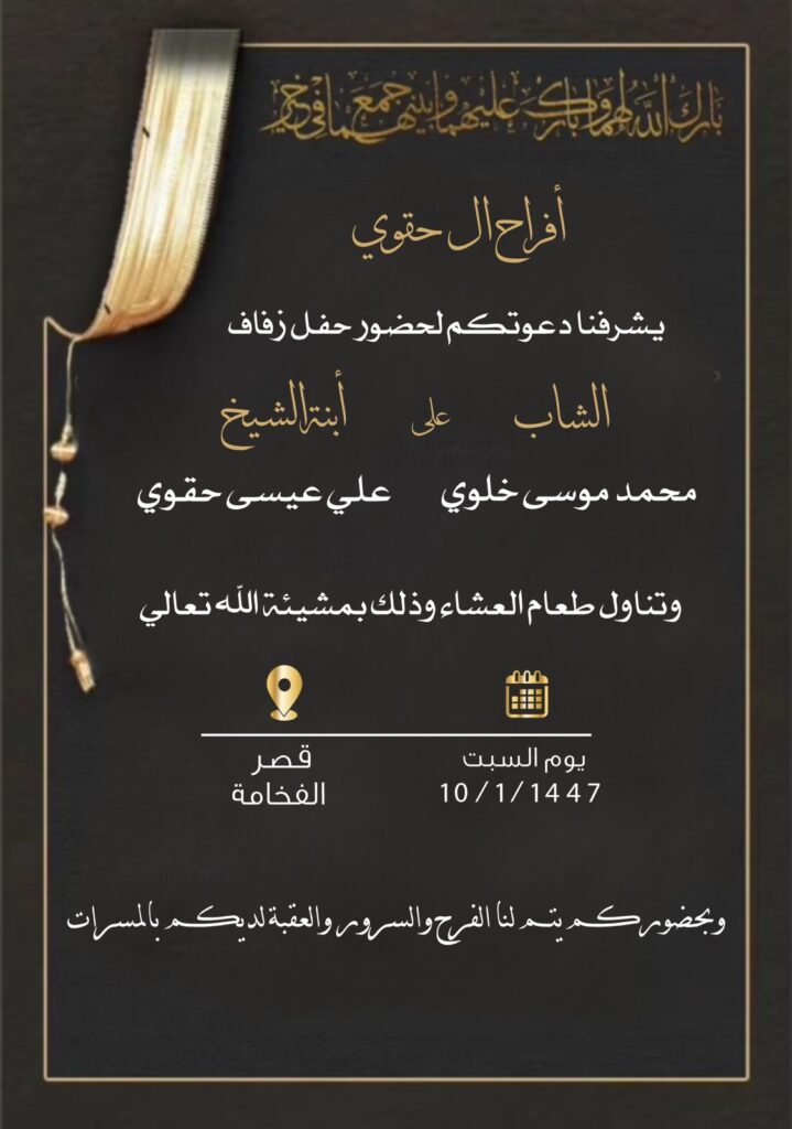 دعوة زواج | محمد موسى خلوي – السبت 10 محرم 1447هـ