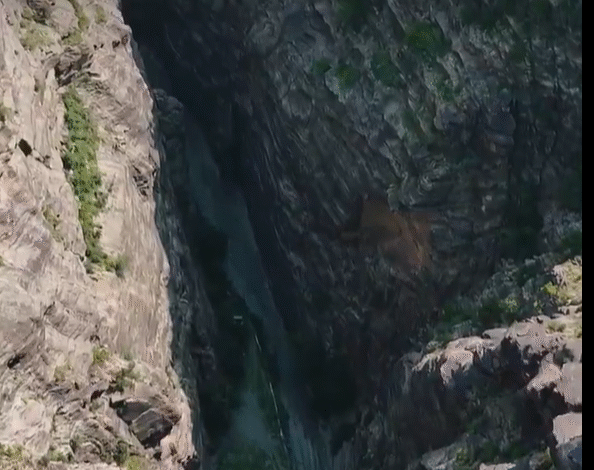 ويظهر في المقطع، الذي حمل وسم #فيديو_اليوم، لقطة بانورامية لسيارتين تمرّان بين جدران صخرية شاهقة، في مشهد يعكس جمال تضاريس الوادي وتفرده البيئي.