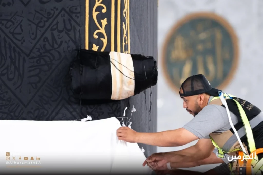 وتجري عملية فك المذهبات من الكسوة القديمة بعد صلاة العصر يوم الأربعاء 29 / 12 / 1446 هـ، على أن يكون موعد بدء مراسم التغيير الرسمية داخل المسجد الحرام مطلع بداية يوم الخميس الأول من شهر محرم للعام 1447هـ.