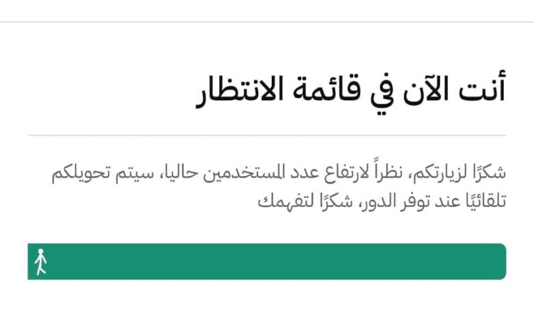 ويأتي هذا الإجراء نتيجة الارتفاع الكبير في عدد محاولات الدخول المتزامنة على الموقع، حيث أوضح النظام أن المستخدم سيتم تحويله تلقائيًا فور توفر الدور، في إطار تنظيم حركة الدخول وضمان استمرارية الخدمة لجميع المستفيدين.